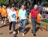O prefeito Nelson Tureck e a prefeita eleita Regina Dubay participaram no domingo da 19ª etapa do Circuito Sesc de Corrida e Caminhada, que foi realizado em Campo Mourão. Junto com a secretária Sonia Singer (Cultura), eles estiveram na “caminhada saudável” que fez parte da programação. Tá certo que Tureck estava de sapato e, Regina, usando um “saltão anabela”, mas que caminharam, caminharam...