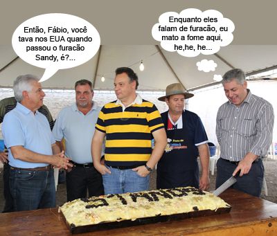 O clic é deste domingo, em Ubiratã, onde a Festa do Leitão à Campestre marcou o aniversário de 51 anos do município. O prefeito Fábio D’Alécio, que estava nos EUA, só conseguiu chegar na véspera devido ao furacão Sandy. Os deputados Rubens Bueno e Douglas Fabrício prestigiaram a festa. Também estão na foto o prefeito eleito Baco e o vice-prefeito eleito, Sebastião Beraldo. E viva Ubiratã!...
