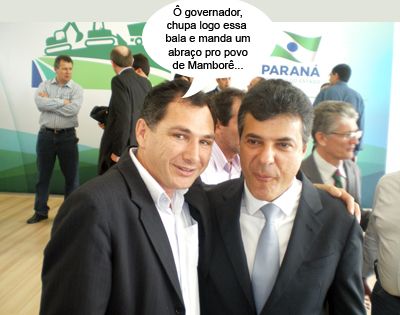 Ainda tem clic da solenidade em Curitiba em que o governador Beto Richa lançou oficialmente o programa “Patrulha do Campo”. Desta vez, ele aparece ao lado do prefeito eleito de Mamborê, Nei Calori de Souza. E que cara, hein governador?...