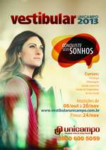 Foram abertas nesta segunda-feira as inscrições para o vestibular de verão da Faculdade Unicampo. As vagas são para cinco cursos – enfermagem, gestão comercial, gestão de cooperativas, psicologia e serviço social. As provas serão realizadas dias 24 de novembro. As aulas começarão em fevereiro. As inscrições podem ser feitas pelo site www.vestibularunicampo.com.br. Depois é só estudar...
