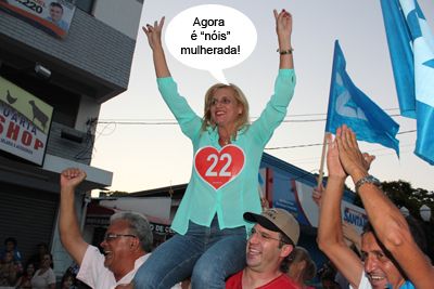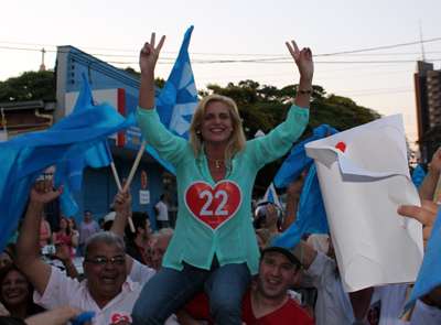 O clic é do final da tarde, quando a prefeita eleita Regina Dubay chegou em frente ao seu comitê para iniciar a festa da vitória. Ele foi carregada nos ombros. O evento incluiu um minicomício no local e seguiu com uma carreata pela cidade.