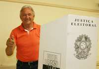José Turozi votou às 9h30, no Sesc. Ele chegou à sessão com a mulher, Marilda, e com a netinha de dois meses no colo. Osni Menezes, seu candidato a vice, votou em seguida, na mesma seção.