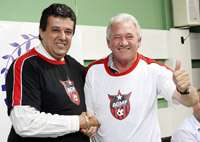Associação Campo Mourão Futsal. Esse é o nome da entidade que vai gerenciar a partir de agora o futsal mourãeoense, incluindo a disputa da Chave Ouro. O lançamento oficial aconteceu nesta quinta-feira. O advogado Miguel Pedro Abudi Jr é quem vai presidir a associação. O prefeito Nelson Tureck esteve por lá, apoiou a iniciativa e ganhou uma camisa da nova equipe. Não ficou muito bom pra ele, mas cavalo dado, né?...