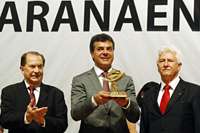 Dois dias depois de serem homenageados pela Comcam, o presidente da Coamo, Aroldo Gallassini, e o governador Beto Richa voltaram a se encontrar. Foi em Curitiba, onde aconteceu o Encontro Estadual de Cooperativistas Paranaenses. Durante o evento foi anunciado que as cooperativas devem fechar o ano com faturamento de R$ 37 bilhões. Só a Coamo entra com R$ 6,7 bilhões. Ô crise mais triste, hein?...