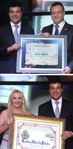 A diferença dos títulos dados pela Comcam e por Farol ao governador Beto Richa, terça-feira, não está apenas na moldura. Na homenagem da Comcam, o nome do governador aparece escrito no popular: “Beto Richa”. Farol, por sua vez, preferiu algo mais formal e mandou ver com “Carlos Alberto Richa”. Aliás, a prefeita Dina Cardoso foi chamada pelo cerimonial pelo nome de registro – “Dirnei”. Ah, chumbo trocado não dói...