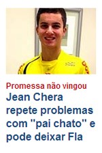 Lembra de Jean Chera, o menino fenômeno que ganhou fama nacional através da Adap de Campo Mourão? Ele tinha ido pro Santos, depois foi pro Genoa (Itália) e agora está no Flamengo. Ele cresceu bastante, mas o futebol nem tanto. Matéria do UOL diz que Chera pode ser dispensado por baixo rendimento. O texto também traz funcionários do clube reclamando do “pai chato” dele. Viu só, o preço da fama?...