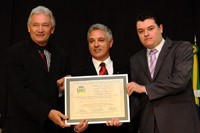 O juiz James Hamilton de Oliveira Macedo recebeu nesta sexta-feira à noite o título de Cidadão Honorário de Campo Mourão. A entrega foi feita durante sessão solene da Câmara, que lotou o Espaço Allure. O vereador Helton Borges, autor da proposição, e o prefeito Nelson Tureck fizeram a entrega da homenagem. Tureck teve o mandato cassado por Macedo, mas também voltou através de uma liminar dele.