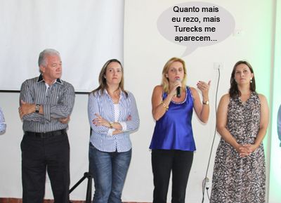 ENQUANTO ISSO, NO EVENTO DA DEPUTADA... O clic é da semana passada, durante a abertura do encontro regional promovido pela deputada Marla Tureck sobre educação. A prefeita Regina Dubay esteve por lá e discursou. Ficou ao lado da deputada e da secretária de Educação, Karla Tureck. E observada pelo ex-prefeito Nelson Tureck. Viu só, Turecks unidos jamais serão vencidos...