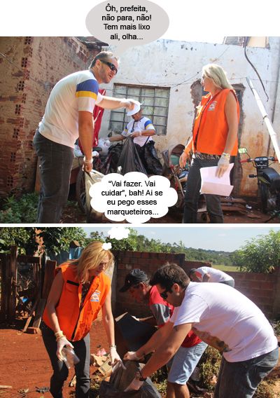 ENQUANTO ISSO, NO COMBATE À DENGUE... Olha aí mais fotos da força tarefa que no sábado foi em busca de lixos que acumulam água pelos bairros e pelo centro da cidade. A prefeita Regina Dubay, que dar o exemplo, pôs o colete da Defesa Civil e foi pro trabalho. Tem que fazer e tem que cuidar, uai!...