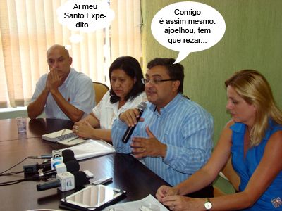 O clic é da entrevista coletiva após a reunião, na prefeitura, que definiu a volta do pronto socorro da Santa Casa de Campo Mourão. Na foto estão o presidente da instituição, Paulo Davidoff (rezando?); a presidente do Conselho de Saúde, Lenilda de Assis; o secretário Michele Caputo (Saúde) e a prefeita Regina Dubay.
