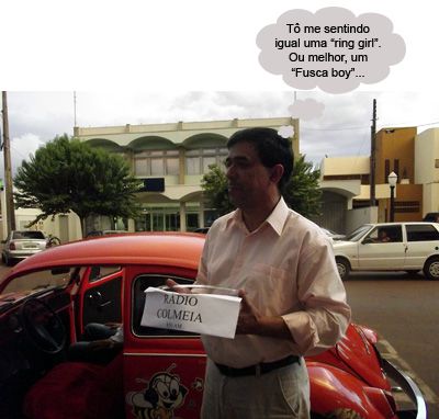 O clic é do vereador Sidnei Jardim, que virou apresentador da rádio Colmeia e foi participar da tradicional promoção da emissora, que sorteia um Fusca entre seus ouvintes. O Fusquinha 75 saiu para João F. Soares. Ah, pensa que é só ex-prefeito Nelson Tureck que ganha Fusca, é?...