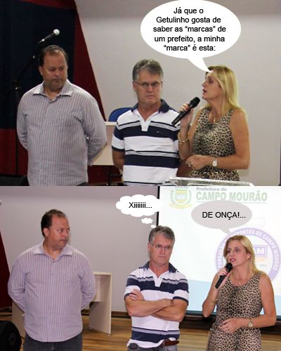 Uma correção. O prefeito Gilson Cassol (Barbosa Ferraz) foi ver a presidente Dilma Rousseff, mas não em Cascavel como a gente publicou ontem e sim em Arapongas, onde ela também esteve para inaugurar uma leiteria de uma cooperativa ligada ao MST. O governador Beto Richa também participou e acabou vaiado. Pudera. Tucano em evento do MST dá nisso. Já o prefeito Cassol, que é do PT, deve ter mais é achado graça. Ou não?...