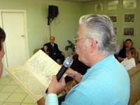 A homenagem aos 40 anos da posse de Renato Fernandes Silva incluiu a leitura da ata de posse. Isso foi feito pelo pesquisador Pedro da Veiga, que foi quem redigiu essa ata em 1973. Veiga também leu o currículo de Silva, que é nascido em Prudentópolis, a mesma cidade do ex-prefeito José Pochapski. Campo Mourão também tem dois prefeitos que nasceram em Mallet e dois “pratas da casa”. Olha aí, empate triplo...