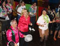 São Pedro não colaborou muito com o desfile dos blocos de Campo Mourão de Campo Mourão, não. O sábado foi um daqueles dias do “chove, não molha”. Chovia um pouco e parava, chovia um pouco mais e parava de novo. A organização manteve o desfile, mas o público ficou abaixo do esperado. Carnaval de rua é assim. Até no Rio a chuva à vezes atrapalha as escolas de samba. Só que lá, com ingresso a R$ 200, ninguém arreda o pé...