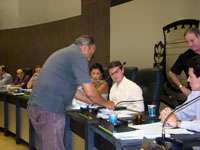 A sessão da Câmara de ontem à noite ia toda tranqüila até a hora de se votar um veto. O assunto nem era polêmico, mas na hora de contar os votos só havia 11 cédulas diante de 12 vereadores presentes. Eraldo Teodoro pediu então anulação da votação, dizendo que não foi chamado para votar. A Professora Vilma quis dizer que não e Eraldo respondeu que não era surdo. Ih, deve ser o estresse dessas reuniões demoradas...