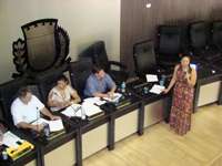 Luiz Alfredo (PT do B), vereador em Campo Mourão, brincando com as dificuldades encontradas na coordenação da comissão que avalia os gastos da Santa Casa e com o ateísmo confesso do mourãoense Fraterno Maria Nunes; segunda-feira, em sessão da Câmara.