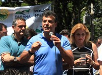 A deputada Marla Tureck e a prefeita Regina Dubay, que discursaram na sequência de Douglas, não tocaram no assunto. Fora do palanque, Regina disse que Douglas pode contar com o apoio dela para seguir a batalha da Unespar. Ao final do evento, após o discurso de Richa, Douglas quebrou o protocolo, pegou o microfone, e elogiou o governador pela proposta de reduzir imposto para o transporte coletivo urbano. Ah, depois do tapinha, o assopro...
