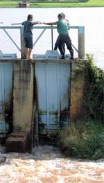 A prefeita Regina Dubay e o secretário José Marin (Obras) foram ontem à tarde acompanhar a abertura das comportas do Parque Lago. Ah, mas quem disse que o negócio abre, assim, de qualquer jeito? Dá um trabalho danado. Nas outras duas vezes que isso foi feito já foi assim. Na segunda chegou a arrebentar tudo, o lago secou de uma vez e muito peixe acabou morrendo. Ih, águas passadas! Literalmente...