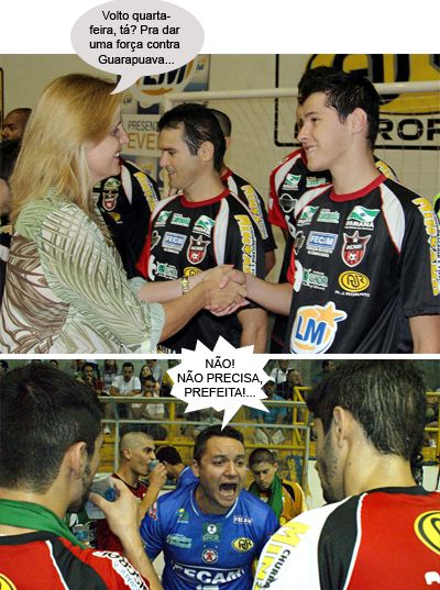 Os cliques são de jogos diferentes, mas a gente não resistiu a brincadeira. Após empatar, sábado, contra a Associação Cascavelense (5 a 5), pelo Paranaense de Futsal, Campo Mourão do técnico Márcio Rinaldo segue com somente uma derrota. E justamente quando a prefeita Regina Dubay apareceu para cumprimentar o elenco. Ih, pensa que é só o Mick Jagger, é?...